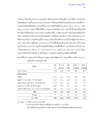 ตารางที่ 10 ผลของปุ๋ยอินทรีย์คุณภาพสูงและปุ๋ยเคมีสูตรต่างๆ ต่อสมบัติทางเคมีบางประการ