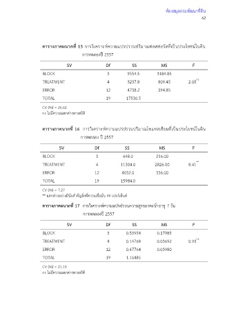 ตารางภาคผนวกที่ 15 การวิเคราะห์ความแปรปรวนปริมาณฟอสฟอรัสที่เป็นประโยชน์ในดิน