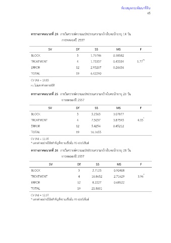 ตารางภาคผนวกที่ 24 การวิเคราะห์ความแปรปรวนความกว้างใบคะน้าอายุ 14 วัน