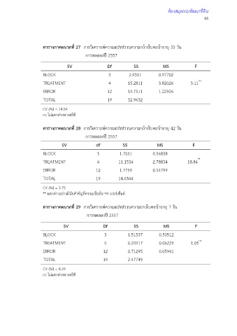 ตารางภาคผนวกที่ 27 การวิเคราะห์ความแปรปรวนความกว้างใบคะน้าอายุ 35 วัน