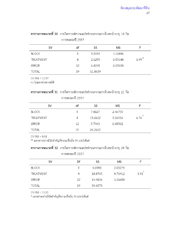 ตารางภาคผนวกที่ 30 การวิเคราะห์ความแปรปรวนความยาวใบคะน้าอายุ 14 วัน
