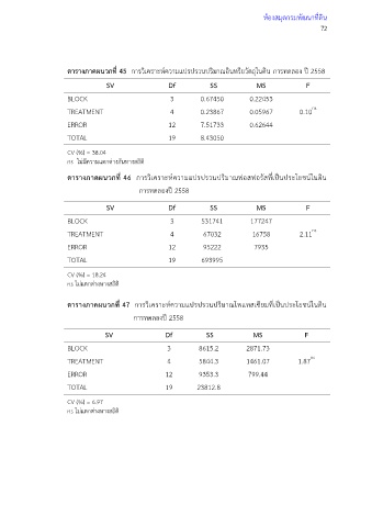 ตารางภาคผนวกที่ 46 การวิเคราะห์ความแปรปรวนปริมาณฟอสฟอรัสที่เป็นประโยชน์ในดิน
