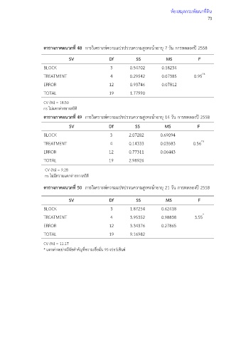 ตารางภาคผนวกที่ 49 การวิเคราะห์ความแปรปรวนความสูงคะน้าอายุ 14 วัน การทดลองปี 2558