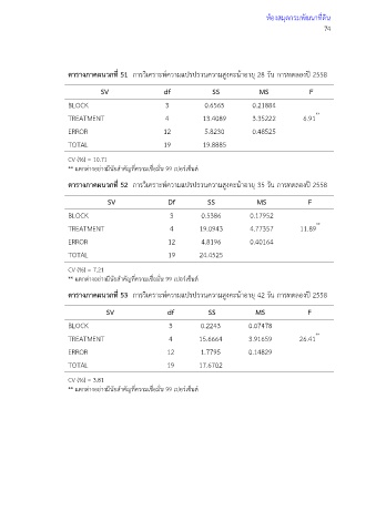 ตารางภาคผนวกที่ 51 การวิเคราะห์ความแปรปรวนความสูงคะน้าอายุ 28 วัน การทดลองปี 2558