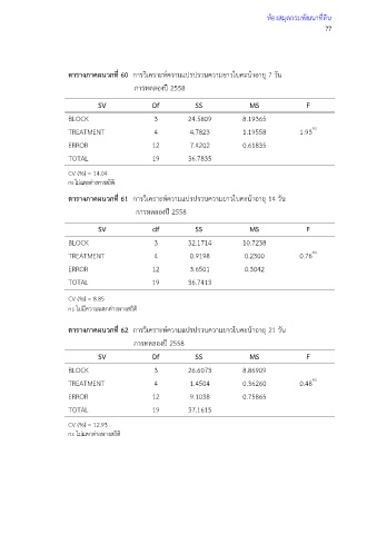 ตารางภาคผนวกที่ 60 การวิเคราะห์ความแปรปรวนความยาวใบคะน้าอายุ 7 วัน