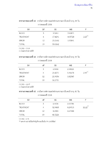 ตารางภาคผนวกที่ 63 การวิเคราะห์ความแปรปรวนความยาวใบคะน้าอายุ 28 วัน