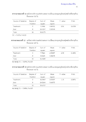 ตารางภาคผนวกที่ 13 ผลวิเคราะห์ความแปรปรวนของการเปลี่ยนแปลงอุณหภูมิของปุ๋ยหมักเปลือกทุเรียน