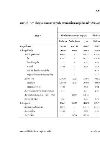 ตารางที่ 3-7 ต้นทุนทั้งหมด 1. ต้นทุนผันแปร 1.1 ค่าวัสดุการเกษตร ปุ ๋ ย สารเคมี 1.2 ค่าแรงงาน แรงงานคน 1.5 ค่าดอกเบี้ยเงินกู้ 2. ต้นทุนคงที่ 2.2 ค่าภาษีที่ดิน 2.3 ค่าใช้ที่ดิน