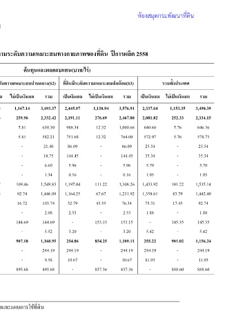 ที่ดินมีระดับความเหมาะสมสูง(S1) รวม ไม่เป็นเงินสด เป็นเงินสด 3,399.97 1,087.36 2,312.61 2,233.25 185.13 2,048.12 448.88 - 448.88 402.57 - 402.57 0.27 - 0.27 46.04 - 46.04 - - - - - - 1,634.70 42.23 1,592.47 1,595.70 42.23 1,553.47 39.00 - 39.00 0.11 - 0.11 142.90 142.90 - 6.66 - 6.66 1,166.72 902.23 264.49 244.19 - 244.19 20.30 - 20.30 887.94 887.94 -