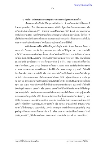 เท่ากับ 2.13 อัตราผลตอบแทนภายในโครงการ เท่ากับร้อยละ 23.58 จุดคุ้มทุนหรือระยะเวลาการคืนทุน