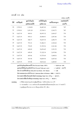 หมายเหตุ 1) ใช้อัตราทอนค่าและตัวกอบกู้ทุนที่ร้อยละ 7 ต่อปี อายุโครงการ 35 ปี