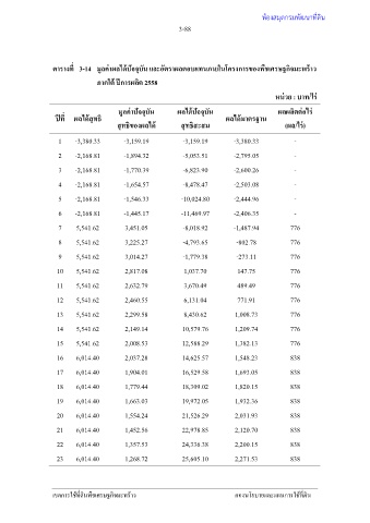 ตารางที่ 3-14 มูลค่าผลได้ปัจจุบัน และอัตราผลตอบแทนภายในโครงการของพืชเศรษฐกิจมะพร้าว