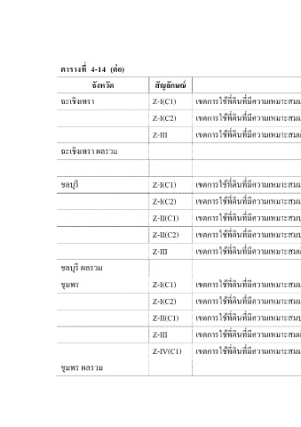 ตารางที่ 4-14 (ต่อ) จังหวัด ฉะเชิงเทรา ผลรวม ชลบุรี ผลรวม ชุมพร ผลรวม