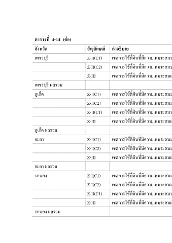 ตารางที่ 4-14 (ต่อ) เพชรบุรี ผลรวม ภูเก็ต ผลรวม ยะลา ผลรวม ระนอง ผลรวม