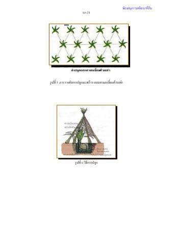 ห้องสมุดกรมพัฒนาที่ดิน ผก-21 รูปที่ 5 การวางผังการปลูกมะพร้าว แบบสามเหลี่ยมด้านเท่า รูปที่ 6 วิธีการปลูก