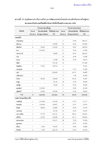 ตารางที่ 2-7 สรุปผลการดําเนินงานโครงการพัฒนาแหล่งนํ้าชลประทานผิวดินขนาดใหญ่และ