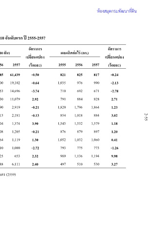 ห้องสมุดกรมพัฒนาที่ดิน อัตราการ เปลี่ยนแปลง (ร้อยละ) -0.24 -2.13 -2.78 2.71 1.23 3.02 1.18 1.20 0.41 -1.26 9.98 3.27