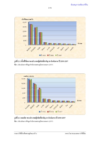 รูปที่ 2-3 ผลผลิต ของประเทศผู้ผลิตที่สําคัญ 10 อันดับแรก ปี 2555-2557