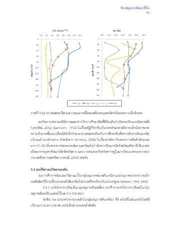 ภาพที่ 5-22 กราฟแสดงปริมาณความจุแลกเปลี่ยนแคตไอออนและอัตรารอยละความอิ่มตัวเบส