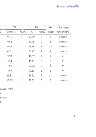 หมายเหตุ วิธีคํานวณระดับความอุดมสมบูรณของดิน ใชวิธีใหคะแนน (กองสํารวจและจําแนกดิน, 2543)