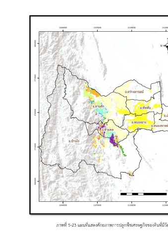 ภาพที่ 5-23 แผนที่แสดงศักยภาพการปลูกพืชเศรษฐกิจของดินที่มีวัตถุตนกําเนิดจากหินแกรนิตบริเวณจังหวัดอุทัยธานี                     100