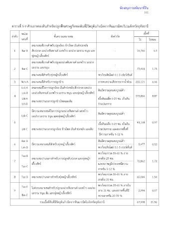 ตารางที่ 5-9 ศักยภาพของดินสําหรับปลูกพืชเศรษฐกิจของดินที่มีวัตถุต้นกําเนิดจากหินแกรนิตบริเวณจังหวัดอุทัยธานี