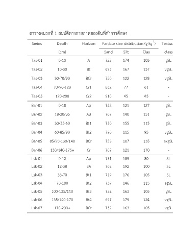 ตารางผนวกที่ 1 สมบัติทางกายภาพของดินที่ทําการศึกษา