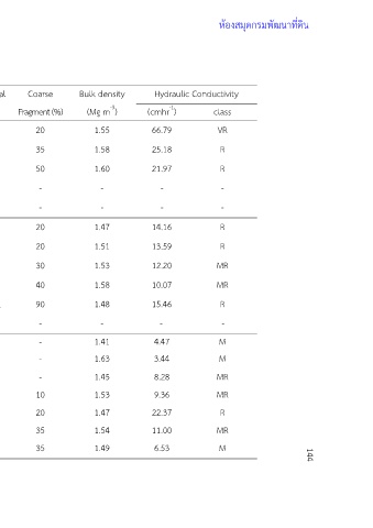 Series Depth Horizon Particle size distribution (g kg ) Textural Coarse Bulk density Hydraulic Conductivity
