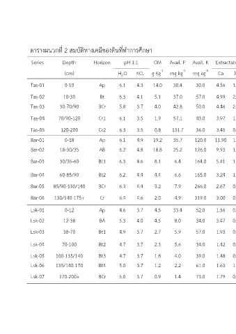 ตารางผนวกที่ 2 สมบัติทางเคมีของดินที่ทําการศึกษา