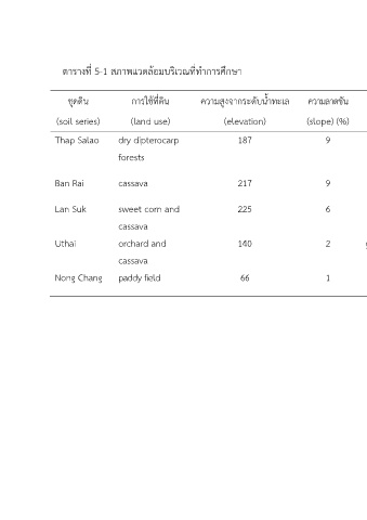 ตารางที่ 5-1 สภาพแวดลอมบริเวณที่ทําการศึกษา