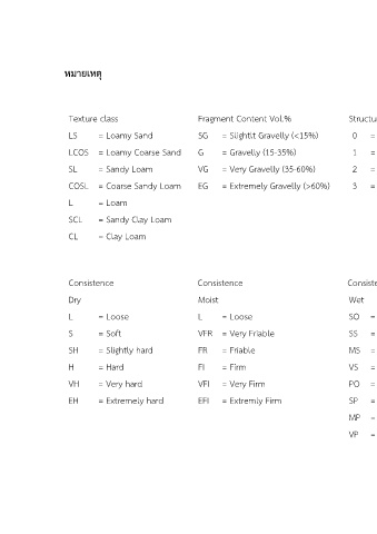 LS = Loamy Sand SG = Slightlt Gravelly (<15%) 0 = structureless VF = Very Fine PL = Platy