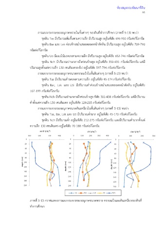 การแจกกระจายของอนุภาคขนาดทรายแปงในชั้นดินตางๆ (ภาพที่ 5-13) พบวา