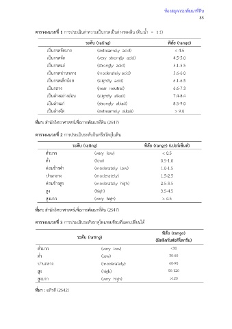 ตารางผนวกที่ 1 การประเมินค่าความเป็นกรดเป็นด่างของดิน (ดิน:น้่า = 1:1)