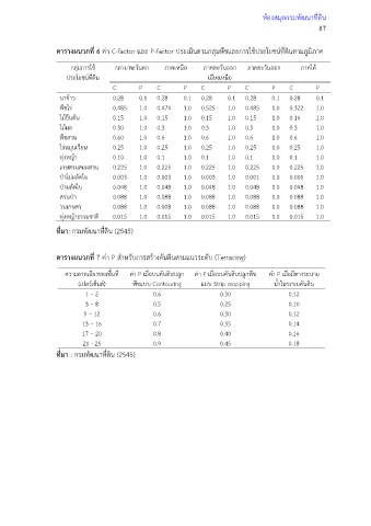 ตารางผนวกที่ 7 ค่า P ส่าหรับการสร้างคันดินตามแนวระดับ (Terracing)