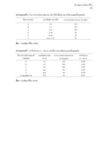 ตารางผนวกที่ 8 ค่าความยาวของความลาดเท () ใช้กับชั้นความลาดชันตามแผนที่กลุ่มชุดดิน