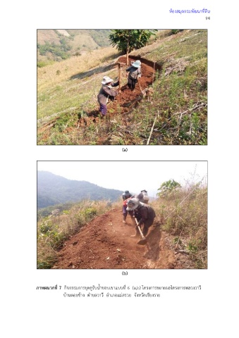 ห้องสมุดกรมพัฒนาที่ดิน 94 (a) (b) ภาพผนวกที่ 7 กิจกรรมการขุดคูรับน้่าขอบเขาแบบที่ 6 (a,b) โครงการขยายผลโครงการหลวงวาวี บ้านดอยช้าง ต่าบลวาวี อ่าเภอแม่สรวย จังหวัดเชียงราย