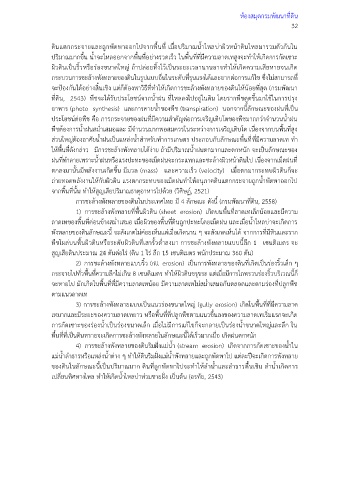 1) การชะล้างพังทลายที่พื้นผิวดิน (sheet erosion) เกิดบนพื้นที่ลาดเทเล็กน้อยและมีความ