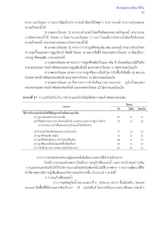 ทราบ และร้อยละ 12 บอกว่าไม่แน่ใจว่าการก่อสร้างโดยใช้วัสดุต่าง ๆ ขวางทางน้่า สามารถช่วยชะลอ