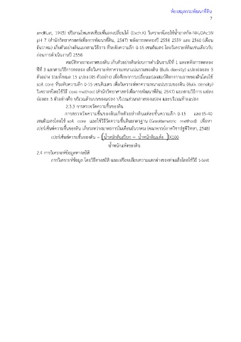 เซนติเมตรโดยใช้ soil core และใช้วิธีวัดความชื้นดินมาตรฐาน (Gravitametric method) เพี่อหา