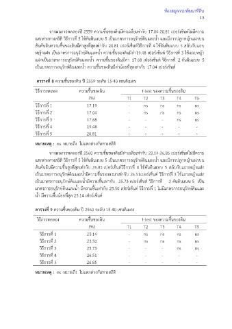 วิธีการทดลอง ความชื้นของดิน t-test ของความชื้นของดิน