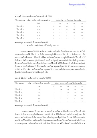 วิธีการทดลอง ค่าความเป็นกรดเป็นด่างของดิน t-test ของความเป็นกรดเป็นด่างของดิน