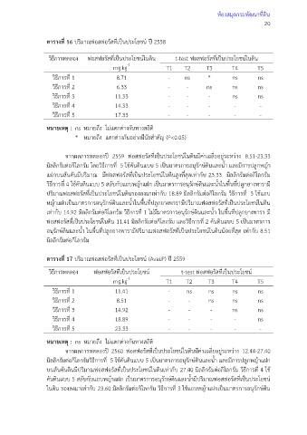 วิธีการทดลอง ฟอสฟอรัสที่เป็นประโยชน์ในดิน t-test ฟอสฟอรัสที่เป็นประโยชน์ในดิน