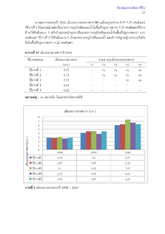 วิธีการทดลอง เส้นรอบวงยางพารา t-test ของเส้นรอบวงยางพารา