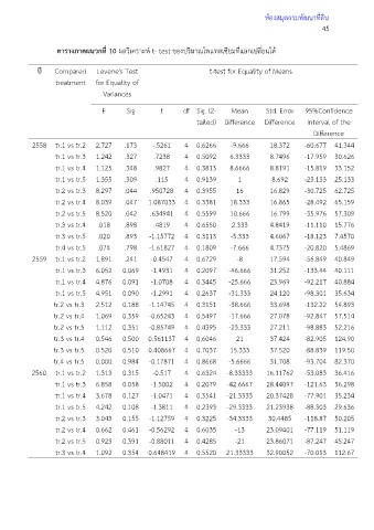 ตารางภาคผนวกที่ 10 ผลวิเคราะห์ t- test ของปริมาณโพแทสเซียมที่แลกเปลี่ยนได้