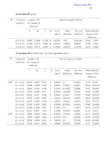 ปี Compared Levene's Test t-test for Equality of Means