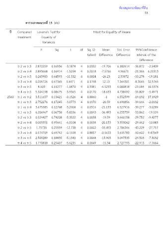 ปี Compared Levene's Test for t-test for Equality of Means