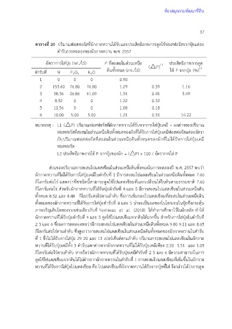 ตารางที่ 20 ปริมาณฟอสฟอรัสที่ผักกาดหวานได้รับและประสิทธิภาพการดูดใช้ฟอสฟอรัสจากปุ๋ยแต่ละ