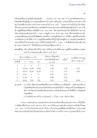 ปริมาณไนโตรเจนในปุ๋ยต ารับที่ 2 3 และ 6 มีสูงถึง 153.6 38.36 และ 10.00 กิโลกรัมต่อไร่ตามล าดับ