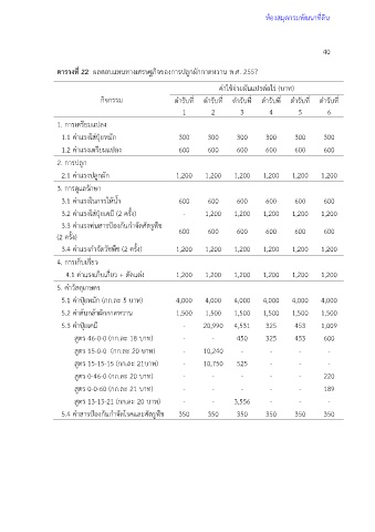 ตารางที่ 22 ผลตอบแทนทางเศรษฐกิจของการปลูกผักกาดหวาน พ.ศ. 2557