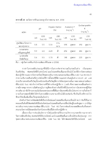ที่ดิน (LDD Test Kit) ต่ ากว่าค่าวิเคราะห์ที่ได้จากห้องปฏิบัติการ 1 ระดับ ซึ่งความคลาดเคลื่อนดังกล่าว